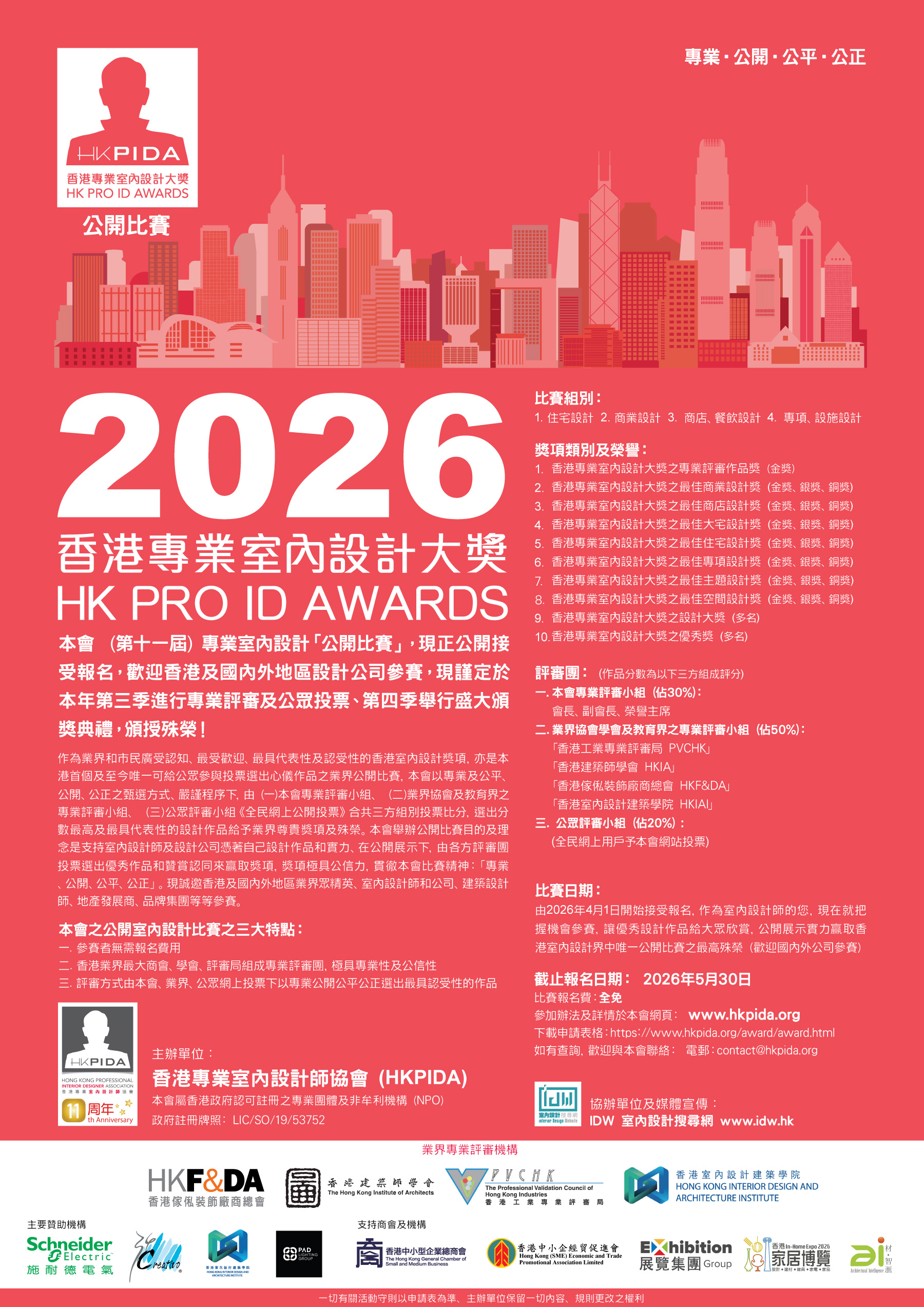 HKPIDA 香港專業室內設計師協會每年舉辦全屬於香港業界和香港設計師的「室內設計公開比賽」獎項活動及頒獎典禮,當日場面非常鼎盛、50多間香港室內設計公司連同眾多設計師及得獎者出席活動,另眾會員、非會員連嘉賓及贊助商合共200多人出席今次盛會,是香港業界最多人出席參與之公開活動。今年設立60個獎項,由121份參賽作品競逐非常激烈,最終只有52間設計公司勝出獲獎,金中金獎更是各項目之金獎中最高分數的一個獎項,各獎項只會當日現埸公佈和頒授,所以非常珍貴,極高認受性及公信力,被視為每年業界公認之成績表。