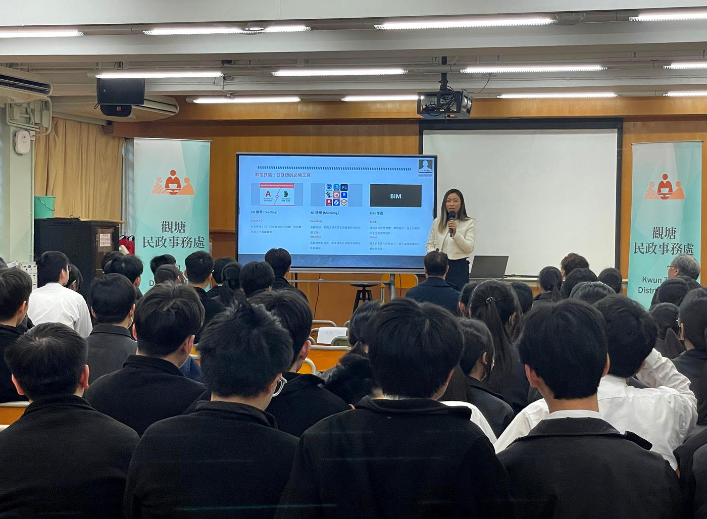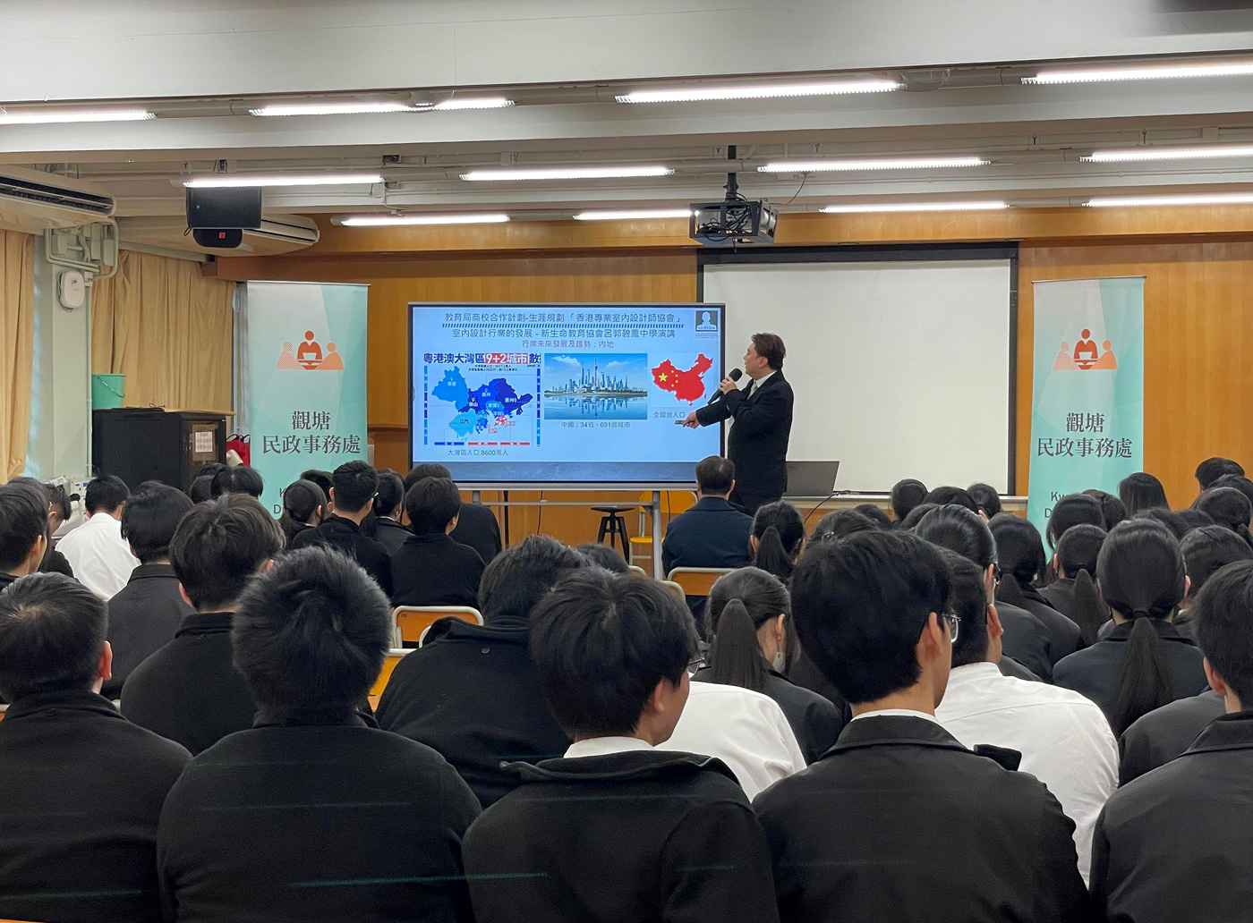 本會授「教育局」委派並受「觀塘民政事務處」和「新生命教育協會呂郭碧鳳中學」邀請演講和分享活動,會長Alex Au-Yeung 與教育及專業發展主席Sammi Yuen向約100名師生們分享生涯規劃等資訊,本會和會長肩負起社會責任及教育傳承等工作,並秉持推廣業界發展和向師生分享生涯規劃的重要性! 支持活動之企業及會員: 請按以下查詢