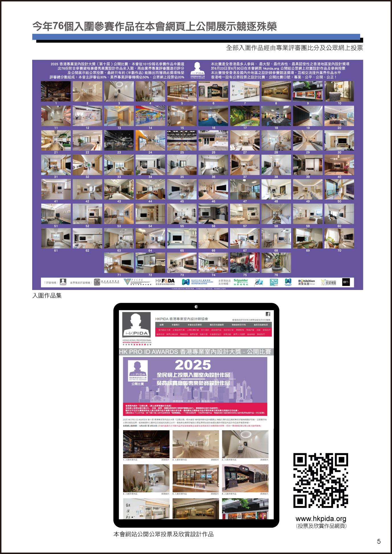 公開比賽頒獎典禮場刊當日場內派發,並郵寄至各大商會、協會、媒體機構、發展商、地產代理、測量行、會所、大學、經濟及貿易發展局作宣傳及發佈