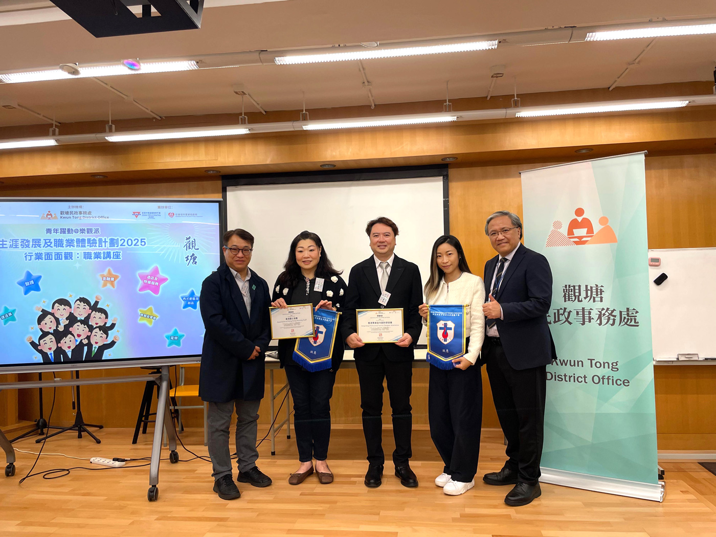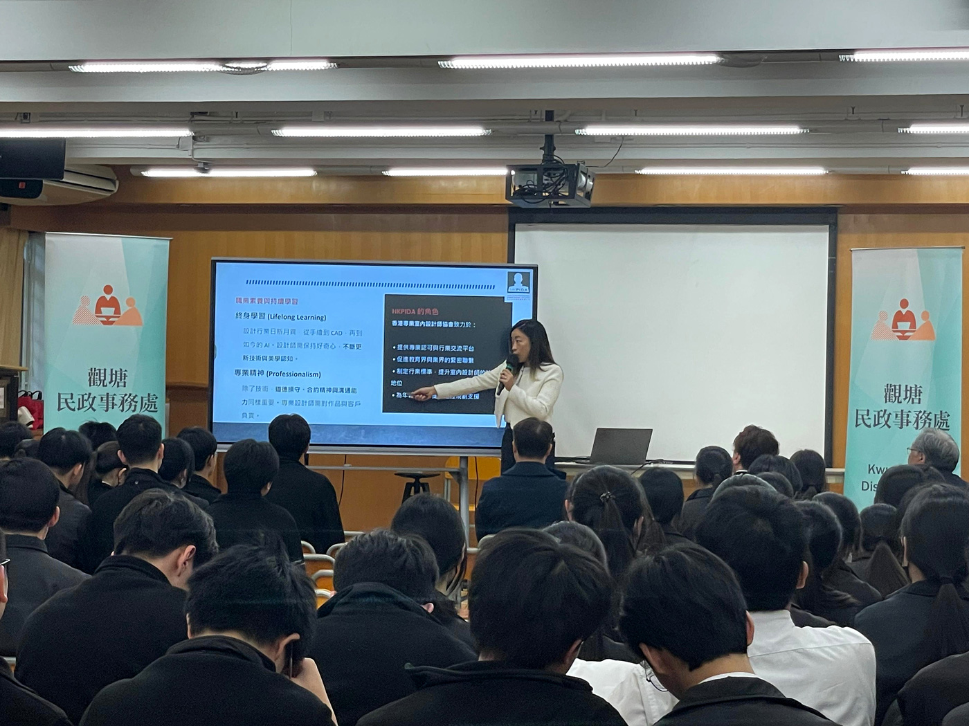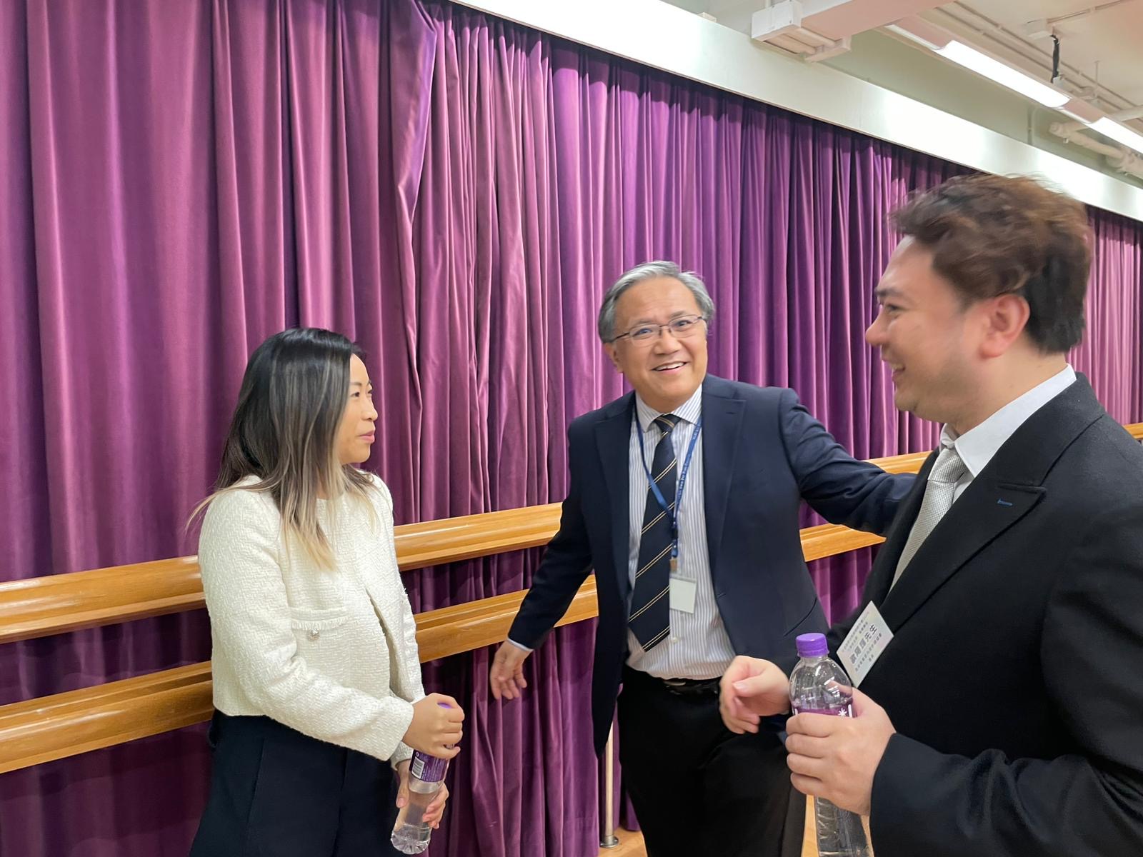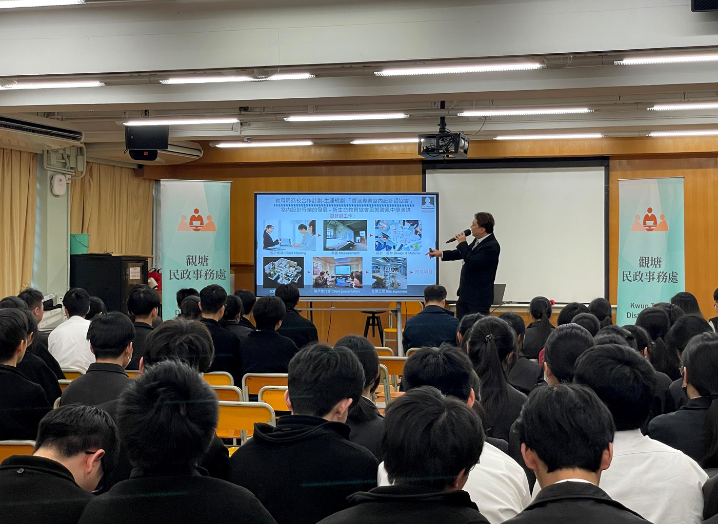 本會授「教育局」委派並受「觀塘民政事務處」和「新生命教育協會呂郭碧鳳中學」邀請演講和分享活動,會長Alex Au-Yeung 與教育及專業發展主席Sammi Yuen向約100名師生們分享生涯規劃等資訊,本會和會長肩負起社會責任及教育傳承等工作,並秉持推廣業界發展和向師生分享生涯規劃的重要性! 支持活動之企業及會員: 請按以下查詢